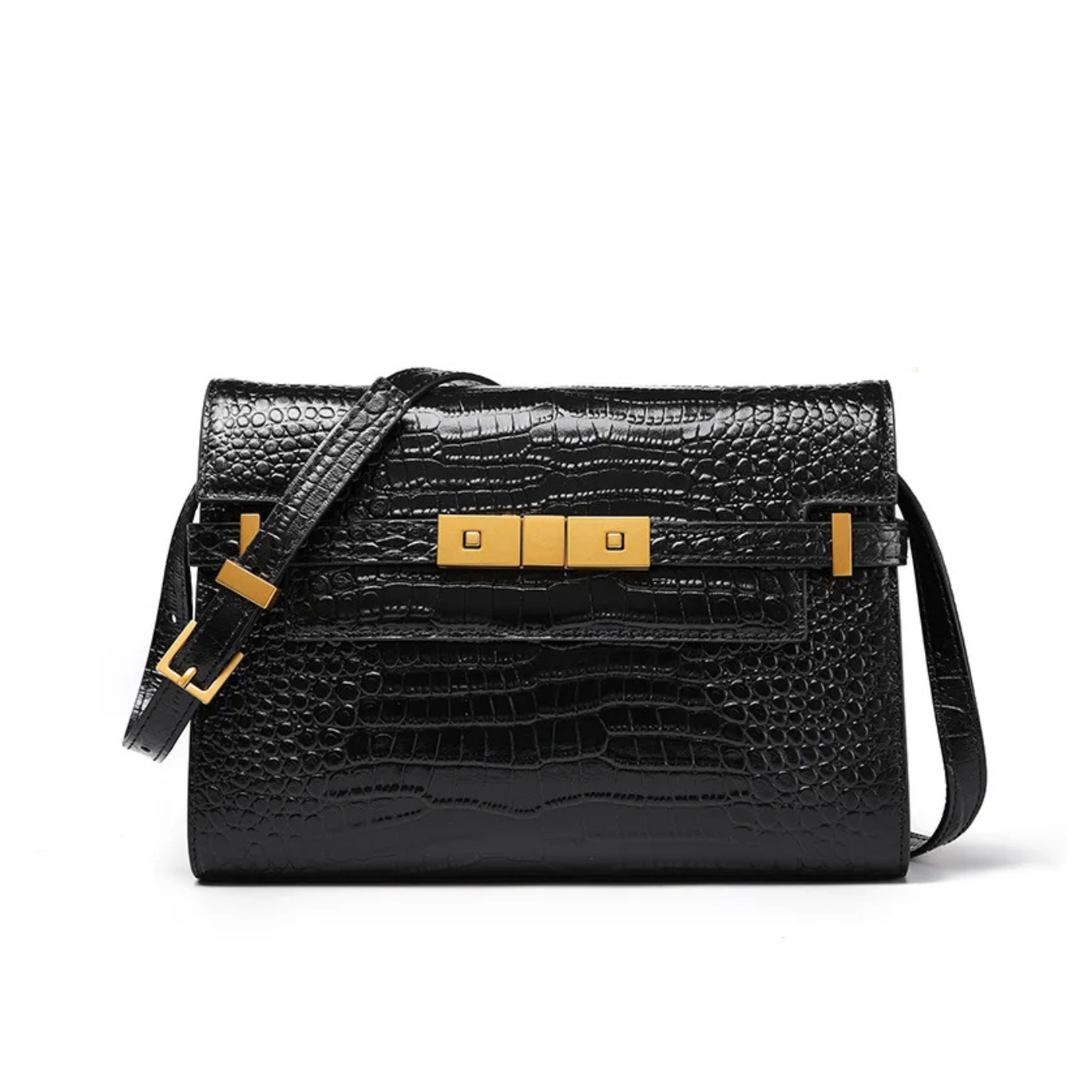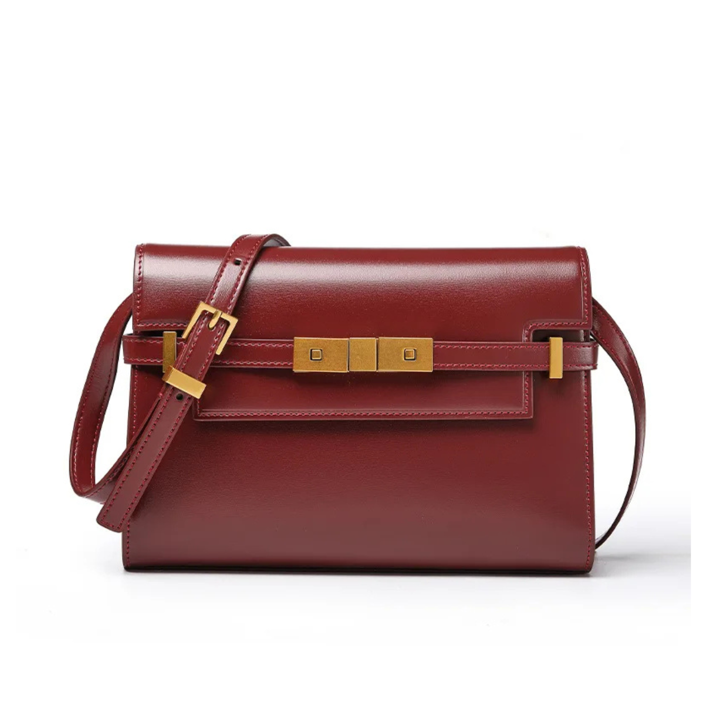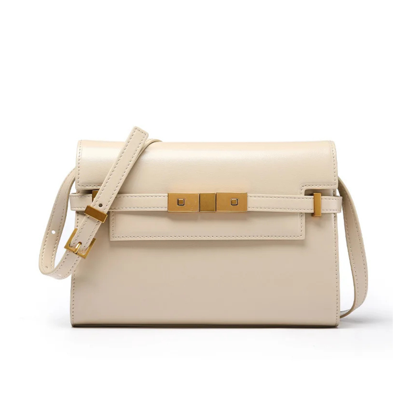 Camila incarne l’élégance contemporaine dans un format structuré. Réalisée en cuir véritable premium, sa silhouette rectangulaire et son rabat orné de détails métalliques dorés lui confèrent une allure sophistiquée et intemporelle.
