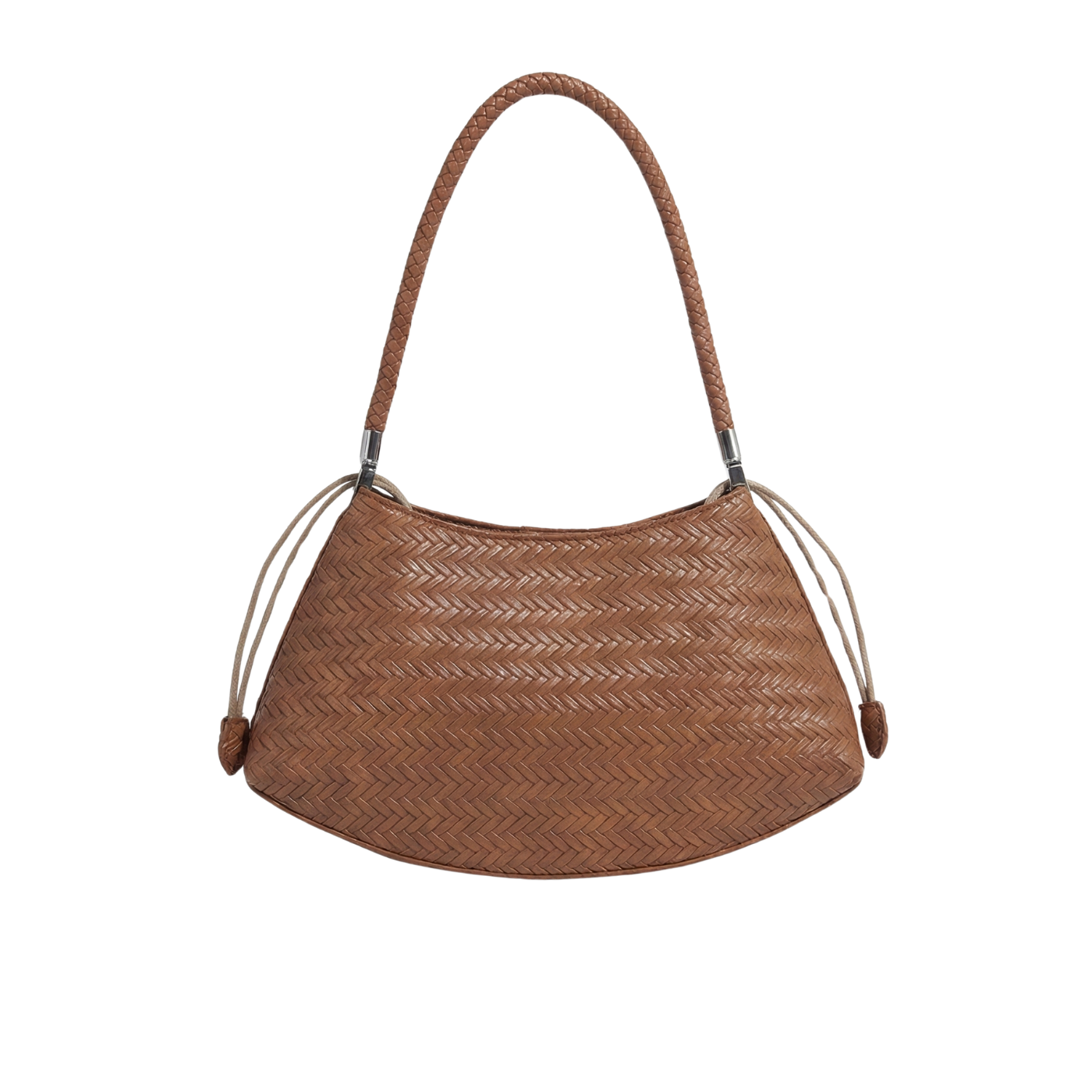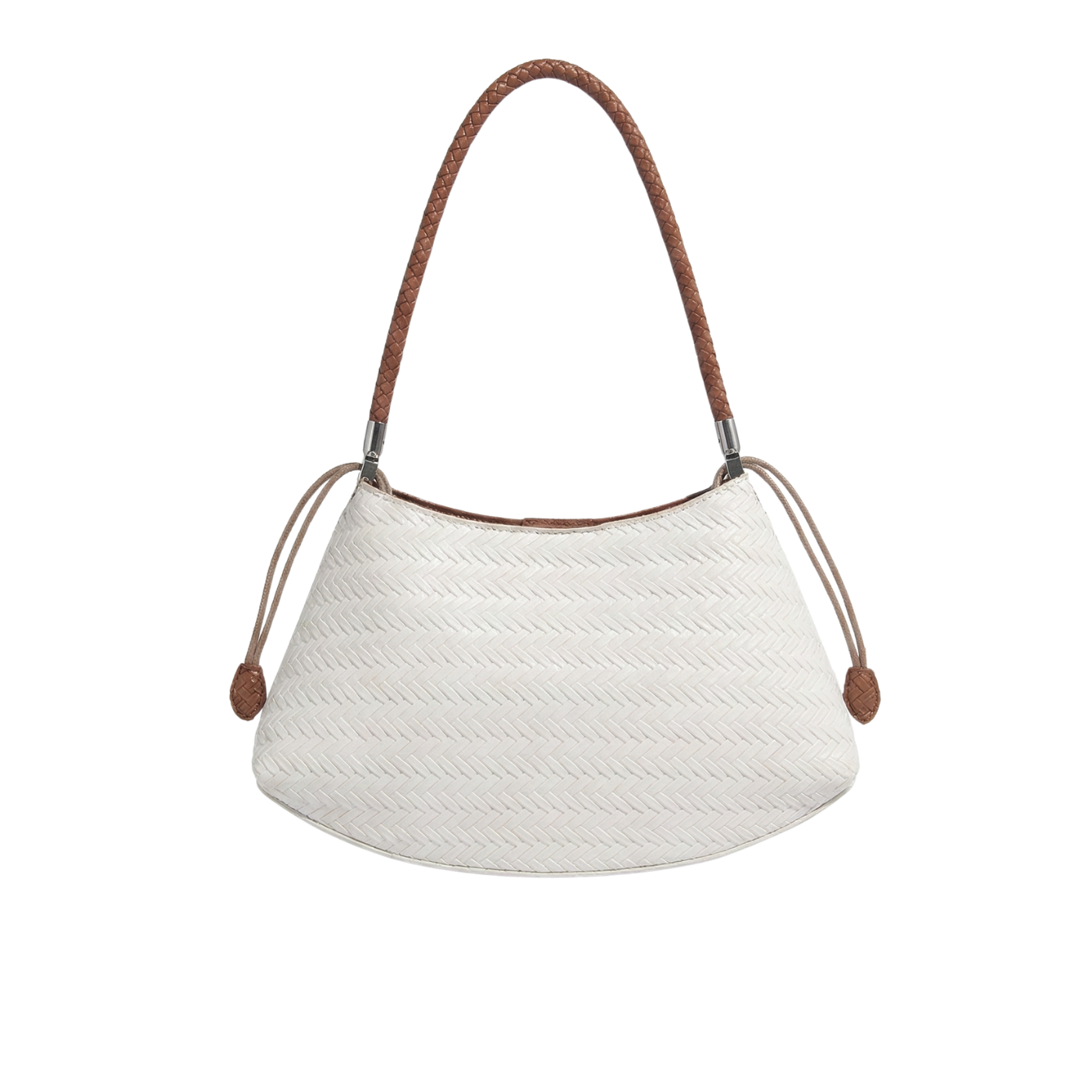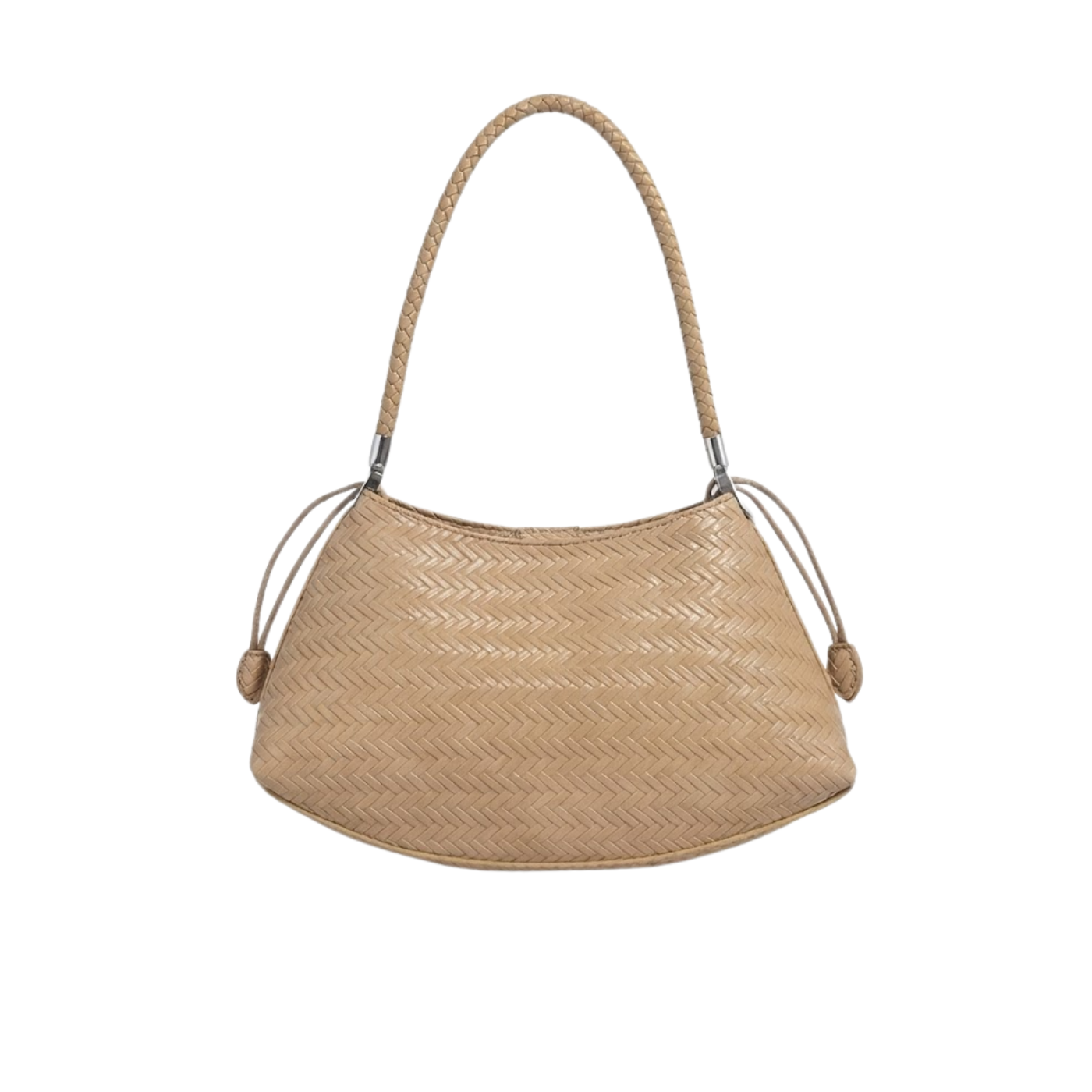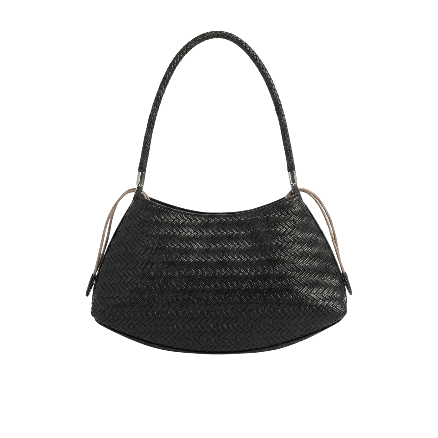 Soren affiche une ligne courbe et équilibrée, soulignée par un tressage régulier en cuir synthétique. La surface lisse et graphique donne un caractère discret, tandis que l’anse tressée offre une tenue confortable à l’épaule. L’ensemble reste simple, pensé pour un usage quotidien sans complication.